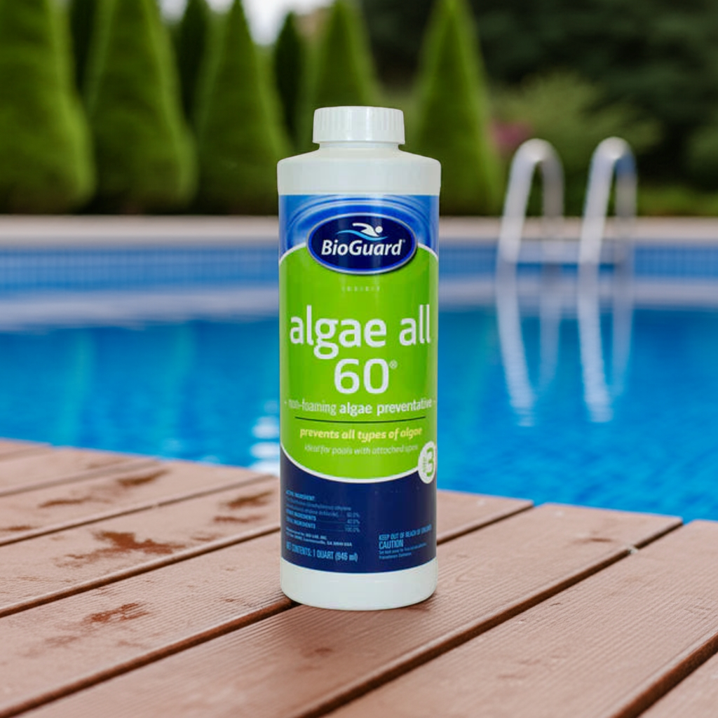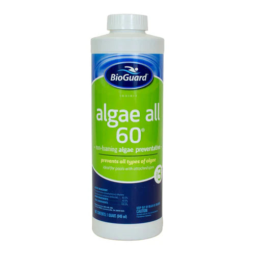 BioGuard Algae All 60 is a highly effective algae preventative. It is recommended by the manufacturer for use with pools with attached spas or jetted returns. This product treats stubborn algae growths in chlorine or bromine pools. It is formulated to be non-foaming and non-staining. This product is effective on all types of algae and works in all pH ranges. Algae All 60 will not affect pH level.